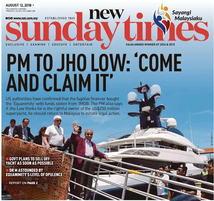 On Thursday (November 21), Malaysians woke up to news that his beautiful yacht, the Equanimity, that they used to ogle at had been sold to a US tech billionaire Gabe Newell, a former Microsoft pioneer who made his fortune developing video games such as Half-Life, Counter-Strike, Left 4 Dead and Team Fortress under his own company, Valve Corporation.Many in Malaysia will remember how proud Jho had been of the Equanimity as well as the news reports about how he took his mother to the shipyard to view it when it was in the final stages of commission. The 364-ft (111-metre) superyacht was valued at US$250 million (RM1.1 billion) when it was completed in 2014.