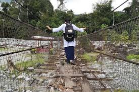 Sabah Poverty - Poor Students Crossing Damaged Bridge To School